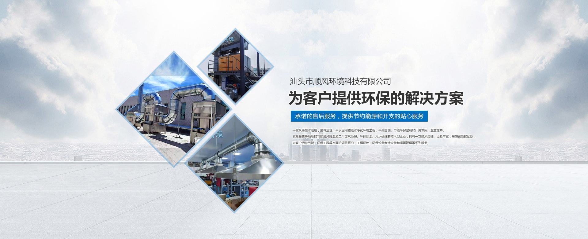 汕頭市順風環(huán)境科技有限公司,是一家專注從事廢水治理,廢氣治理,中水回用和給水凈化環(huán)境工程,中央空調、節(jié)能環(huán)保空調和廠房車間、溫室花卉、家禽畜牧等場所的節(jié)能通風降溫及工廠廢氣處理、環(huán)保除塵、污水處理的技術型企業,擁有一支技術過硬、經驗豐富,思想創(chuàng)新的團隊,為客戶提供節(jié)能、環(huán)保工程等方面的項目研究、工程設計、環(huán)保設備制造安裝和運營管理等系列服務。 多年來,公司堅持 “ 誠信于人,業精于勤” 的宗旨,憑借豐富的工作經驗及雄厚的技術實力為多家大型公司、工廠、養殖、超市等大型綜合場所進行節(jié)能通風降溫及廢氣處理、污水處理等工程設計、安裝、維修、年度保養,得到了顧客的一致好評并長期合作。
